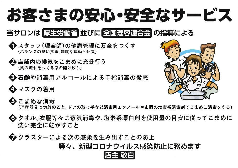 ガイドラインに沿って感染防止対策を講じておりますので、安心してご来店ください。 |