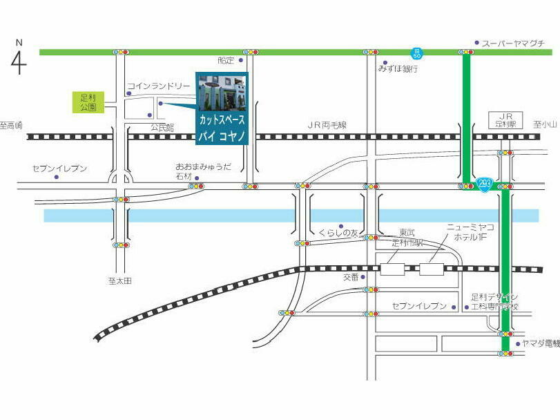 緑橋を北に向かい足利公園入り口を東へ右折、突きあたりにあります