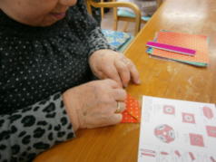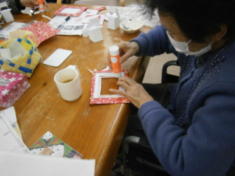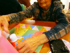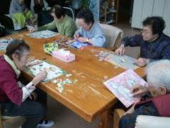 | 作品づくりでは「折る」「貼る」「切る」等の指先の細かい作業をすることで脳の働きを活性化させる効果が期待できます。出来上がった作品は利用者様に達成感を与えます。また施設内やお部屋に飾ったり、ご家族にプレゼントにするなど作品づくり以外の時間にも楽しみを創出しています。 |