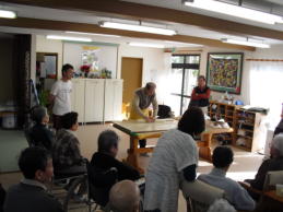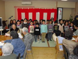 | 当センターでは、地域密着型の一環として施設の近くにある保育園と共同で行事を行っています。「ひなまつり」「じゃがいも掘り」「七夕」「さつま芋掘り」「クリスマス」など四季折々の行事で子供達とふれあいを大切にしています。 |