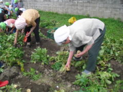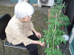 | 当センターでは、施設に隣接する「ひなたファーム」(畑)を所有 し施設で出しているお食事の食材を利用者さんと一緒に育て、 収穫しています。土や植物に触れることで自然や四季を感じ、 農作業を通じて「働く」意欲と「食」の楽しみを味わっています。 |