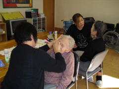| 当センターでは、「美容と健康とリラックス」をテーマに施設内でのレクリエーションと、利用者さんのリフレッシュを図るため「美容の日」「足湯の日」などを決めて行っています。施設内でリラックスして、健康に過ごして頂けるように色々なリラクゼーションを実施しています。 |