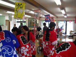 | 当センターでは、毎年秋に「ひなたぼっこ祭り」を開催しています。利用者さんやご家族をはじめ、日頃のご協力いただいているご近所のみなさんに感謝の意味を込めて実施しています。毎年好評で多くの方々にご来場頂いています。 |